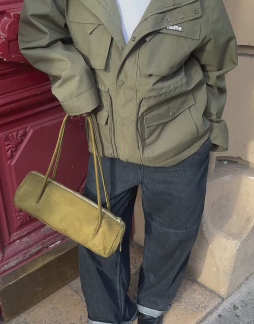 Une veste imperméable en toile denim revisitée avec une coupe structurée et des poches fonctionnelles. Un intemporel du vestiaire technique, parfait pour l’explorateur urbain.