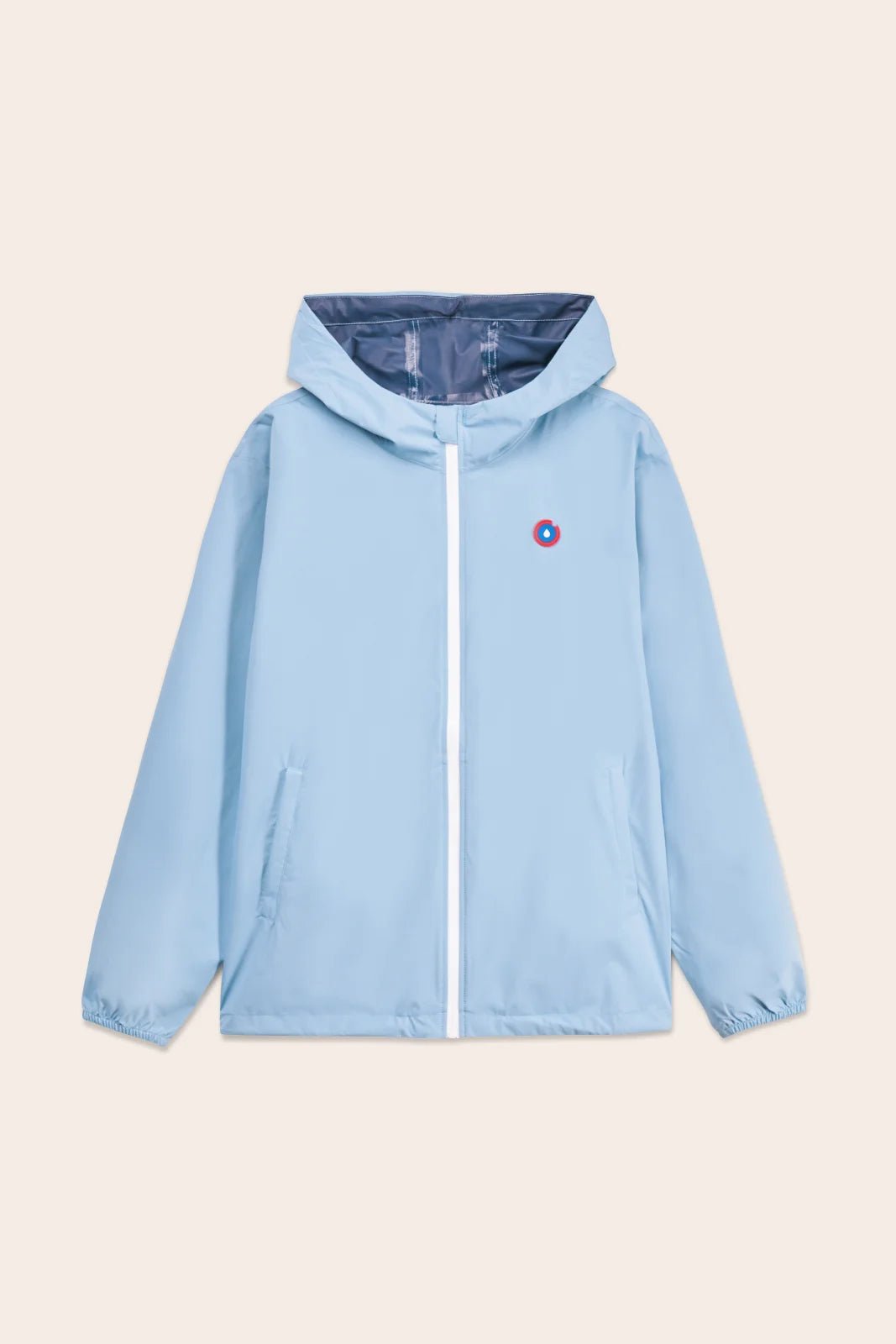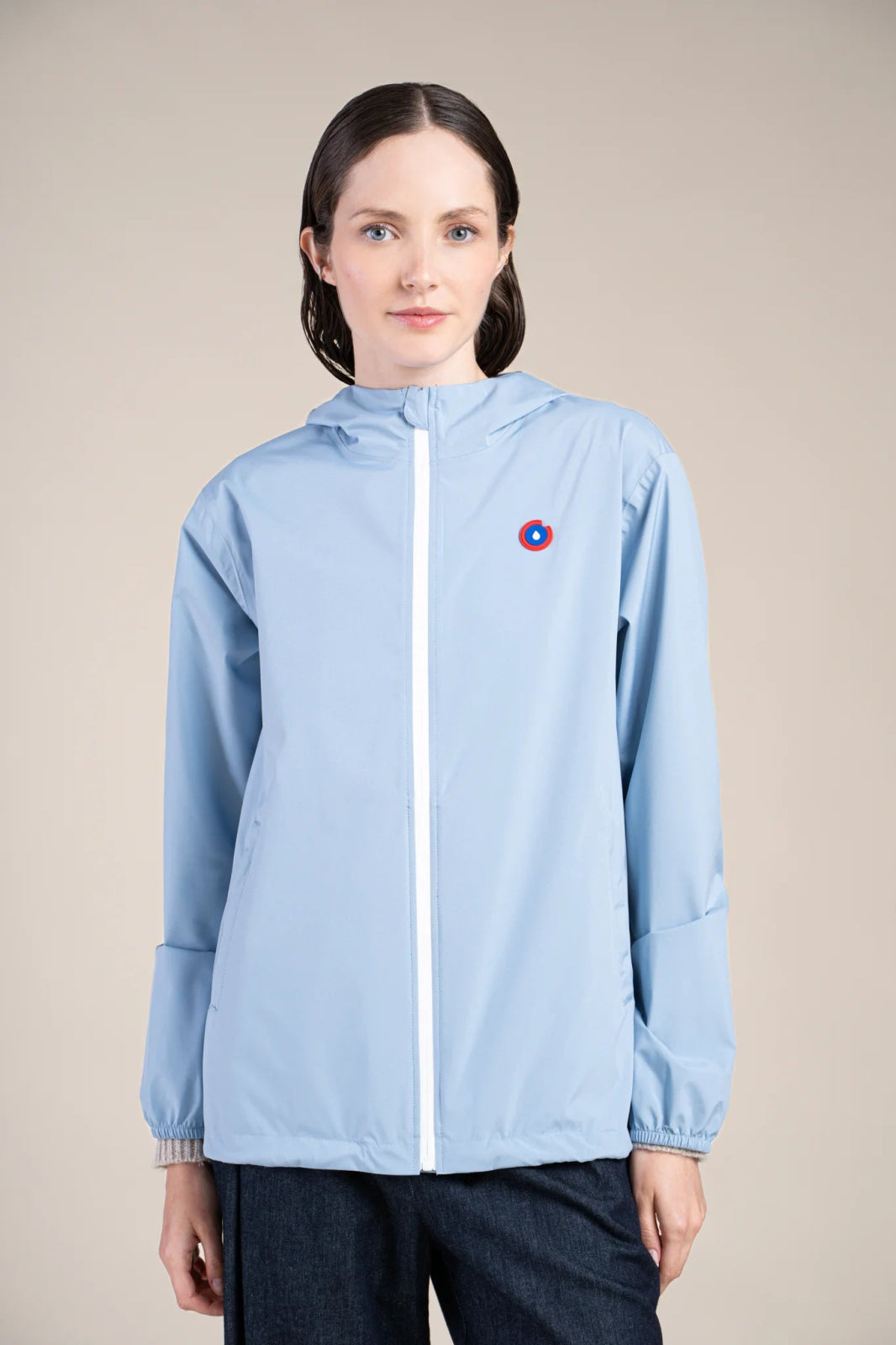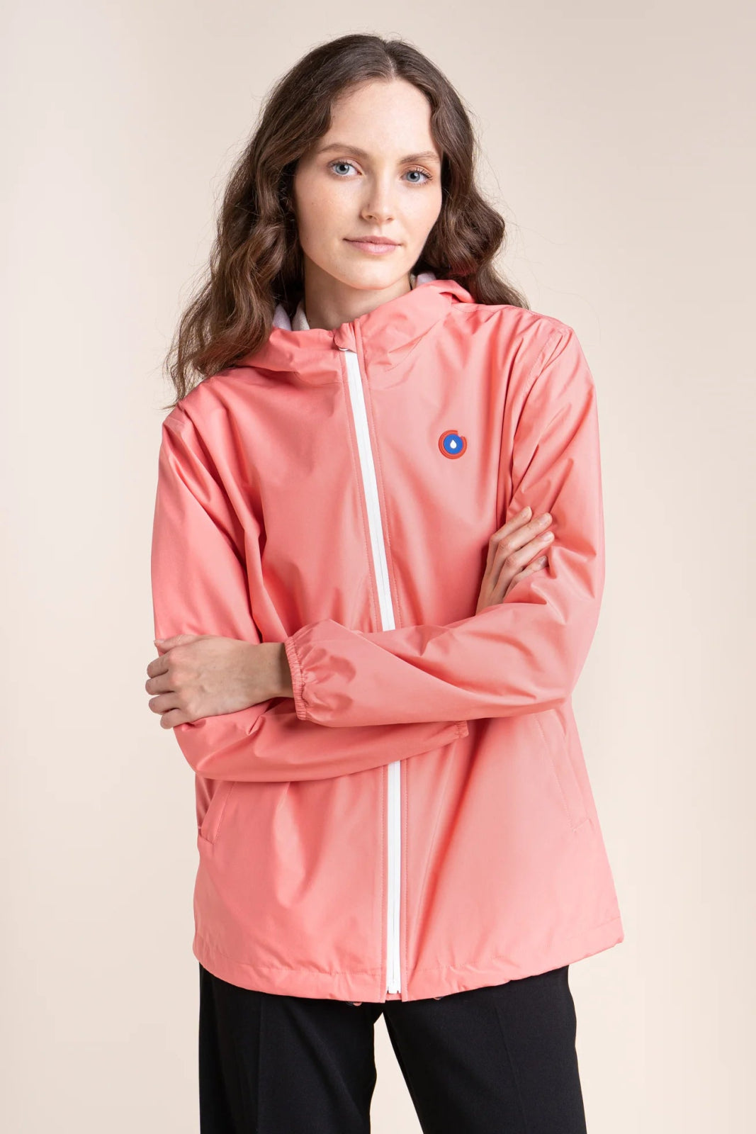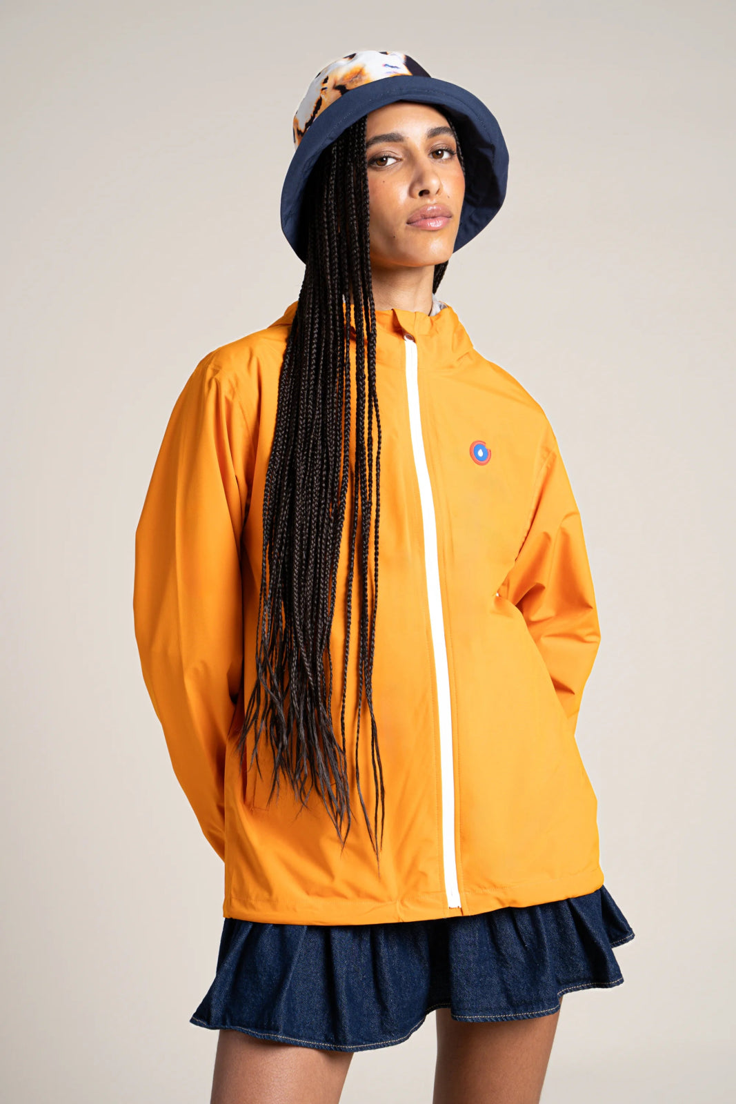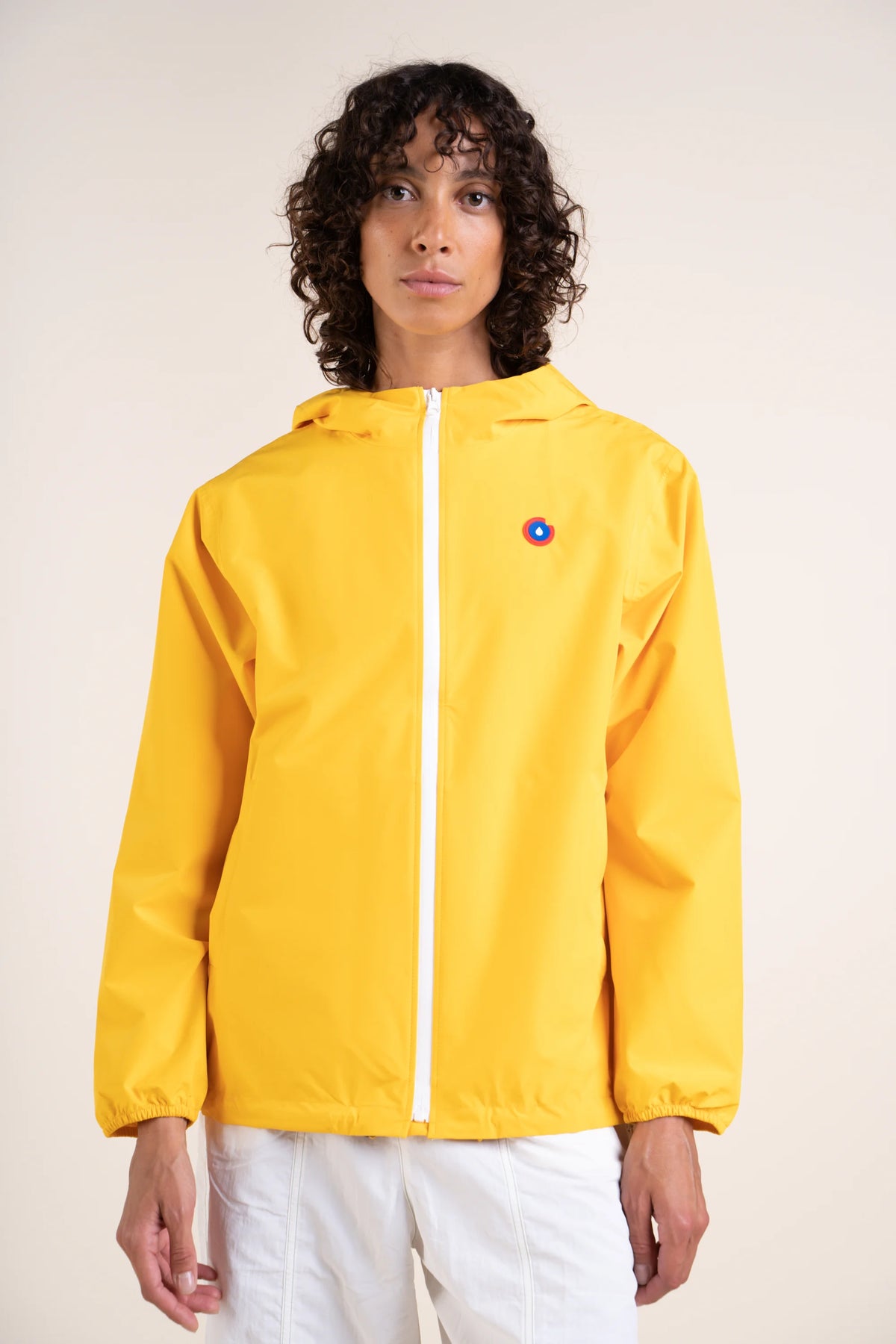 Our raincoat Passy is a short, lightweight jacket that protects against wind and rain. Made from recycled polyester, its fabric is waterproof and breathable. It is a unisex and urban rain jacket, perfect to accompany you on a daily basis and on all your adventures.