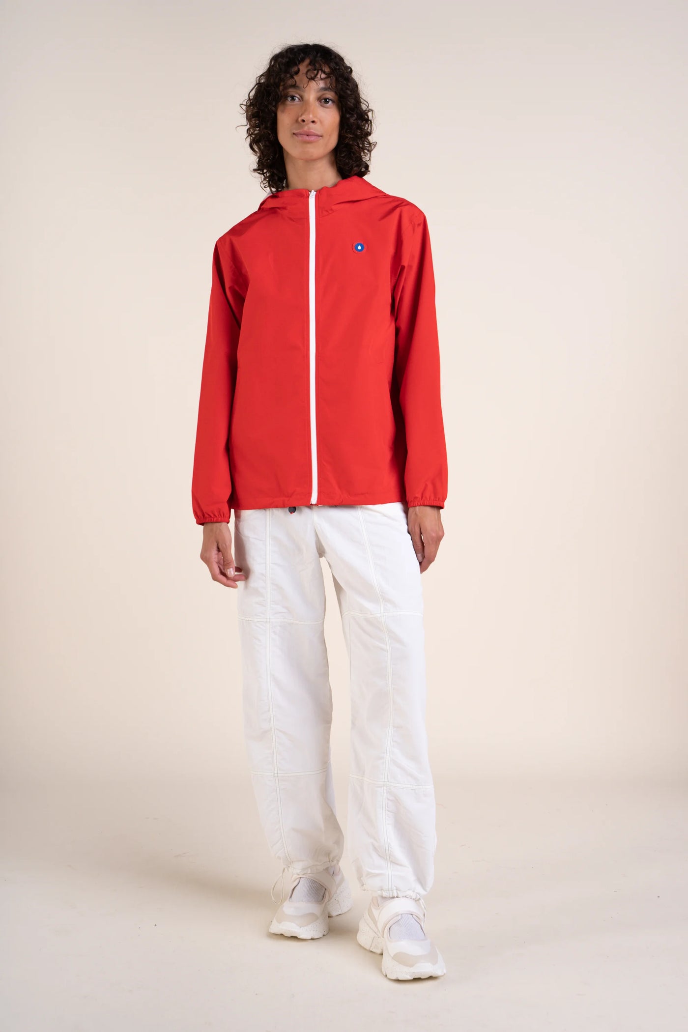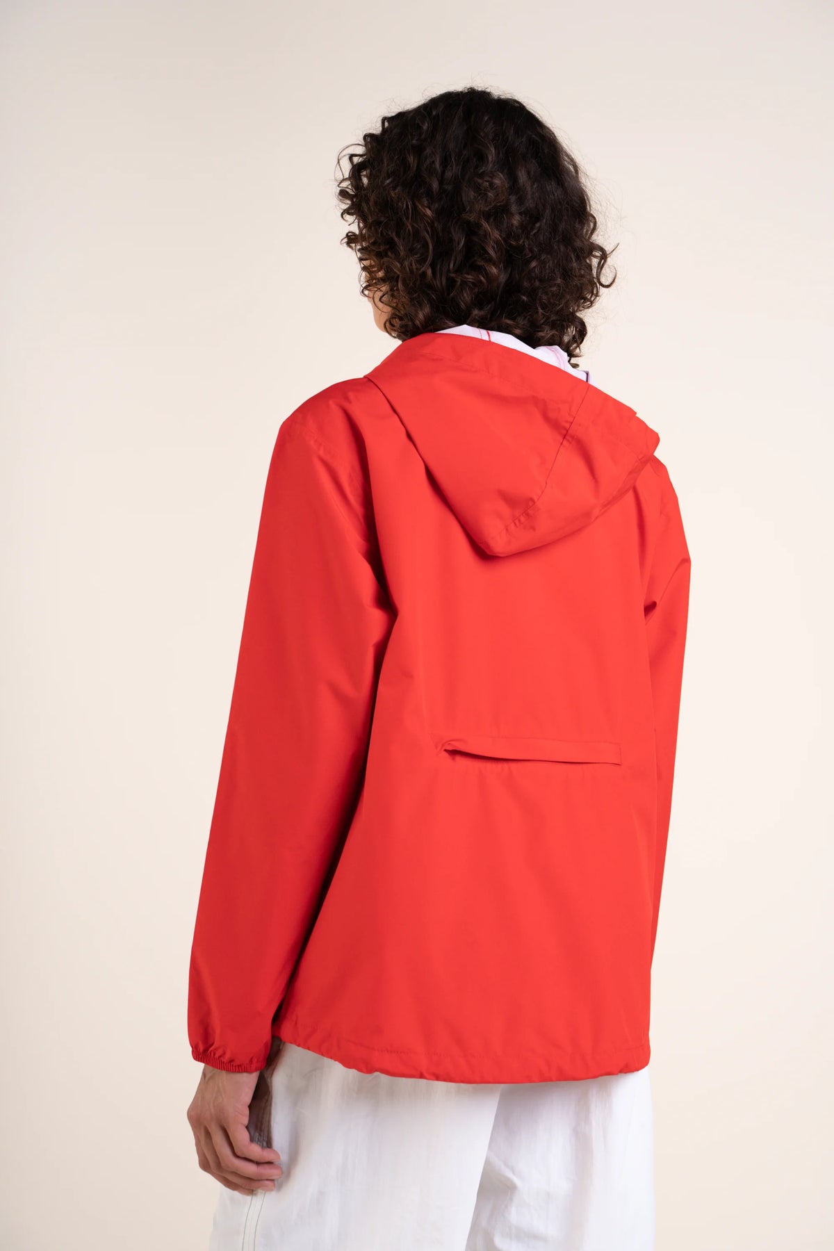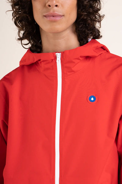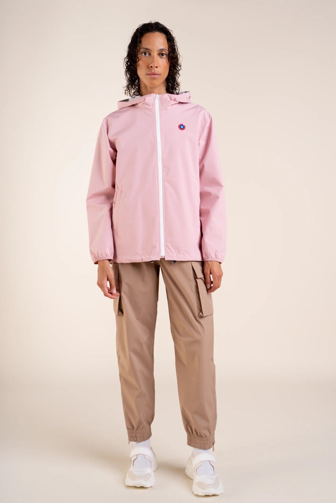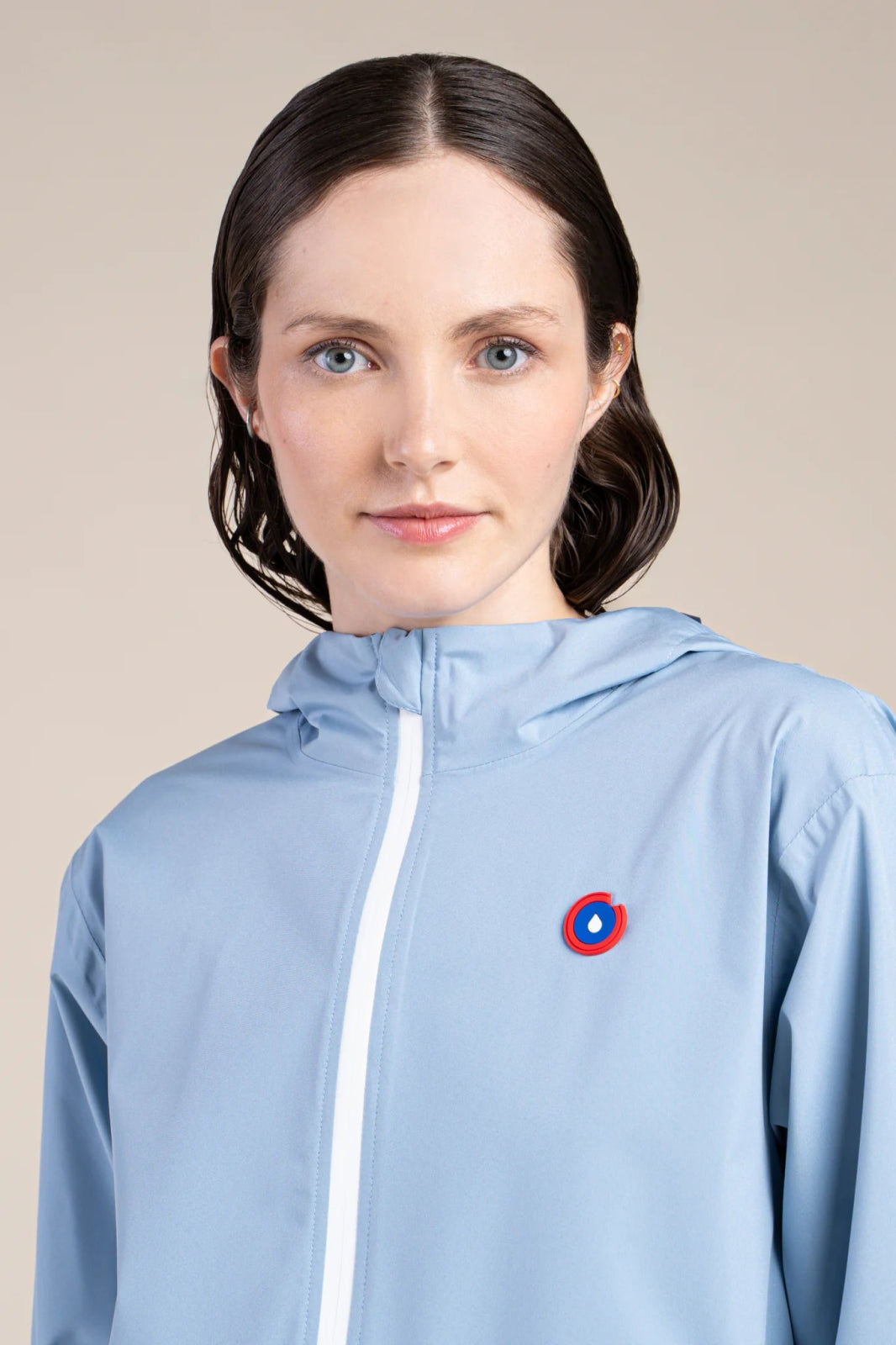 Our raincoat Passy is a short, lightweight jacket that protects against wind and rain. Made from recycled polyester, its fabric is waterproof and breathable. It is a unisex and urban rain jacket, perfect to accompany you on a daily basis and on all your adventures.
