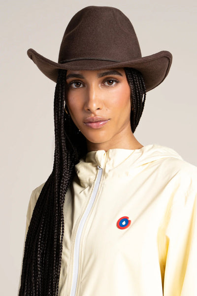 A nomadic, waterproof hood. Recycled polyester fabric.