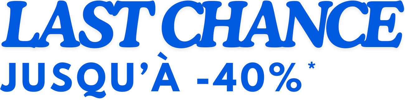 *Les remises ne sont pas cumulables avec les codes du programme de fidélité. Les pièces "Last Chance" ne peuvent pas faire l'objet d'un échange ou d'un remboursement. Seuls les bons d'achat sont possibles, valables sur tout le site.