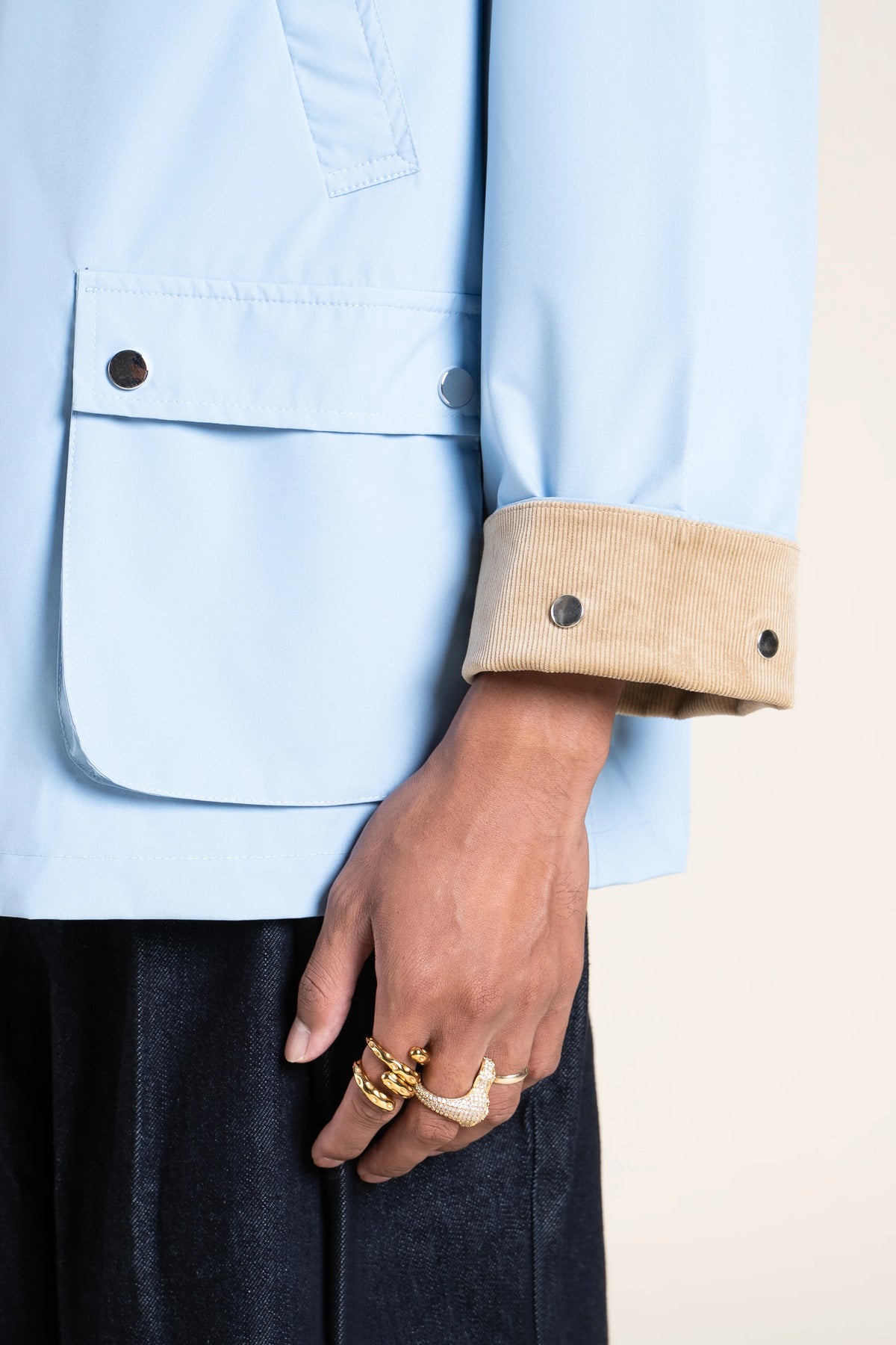 Archives - Imperméable inspiré des vestes de chasse avec col et manches contrastés ciel - Flotte couleur ciel