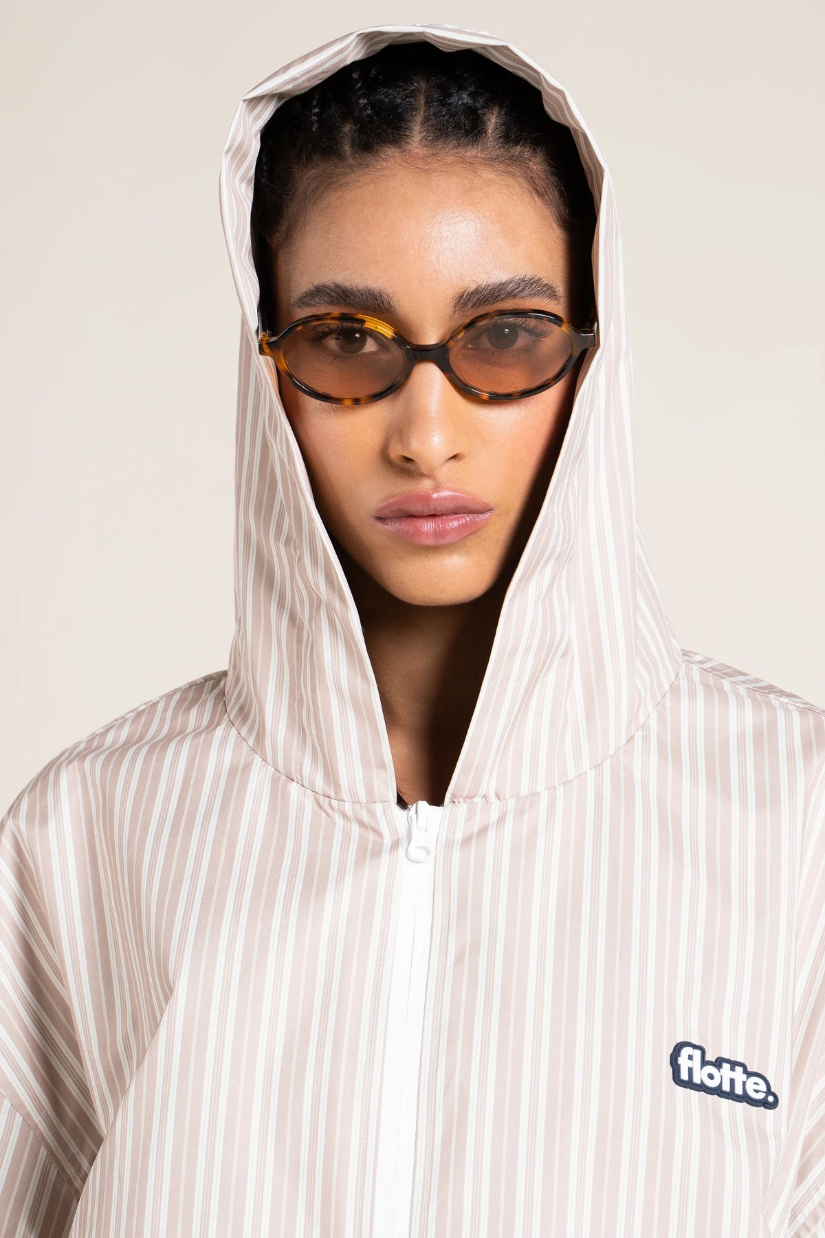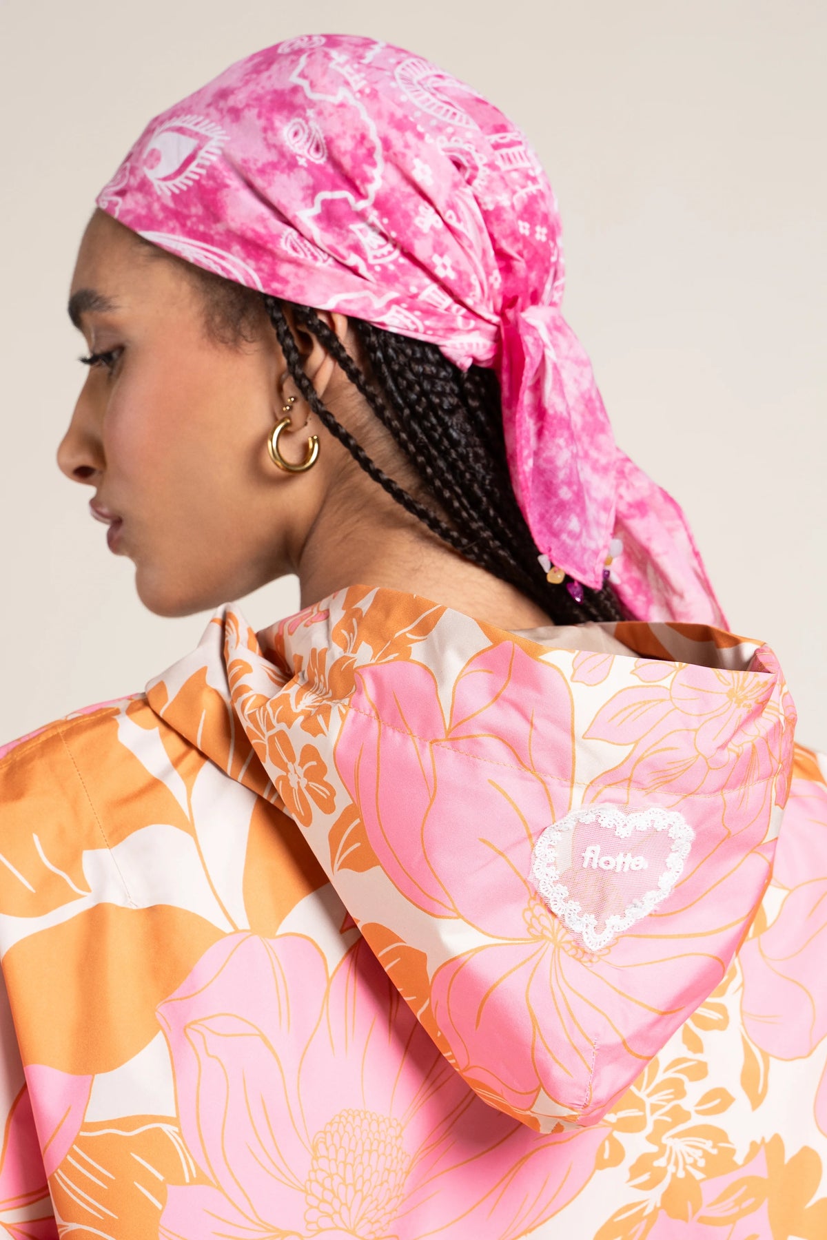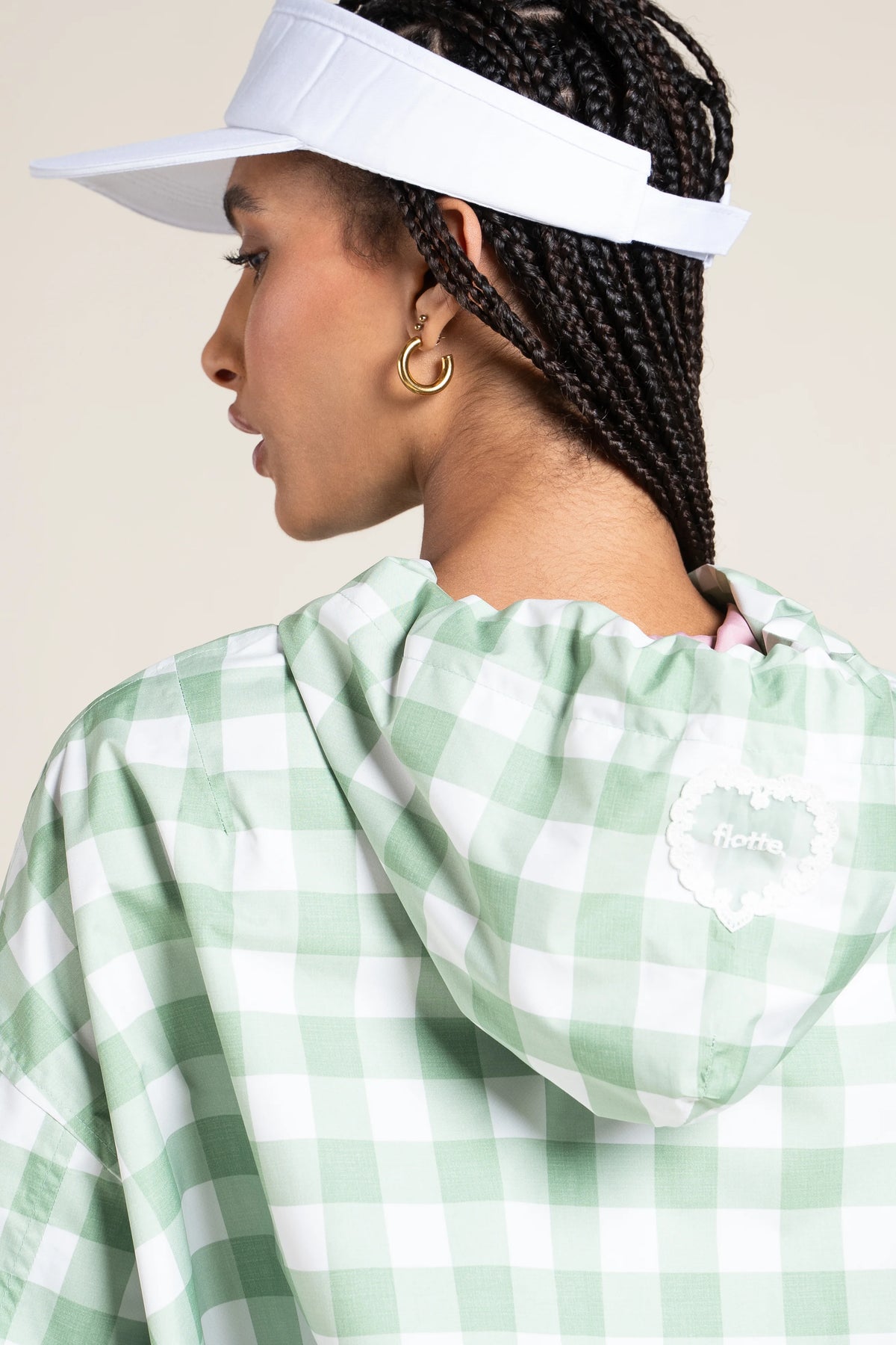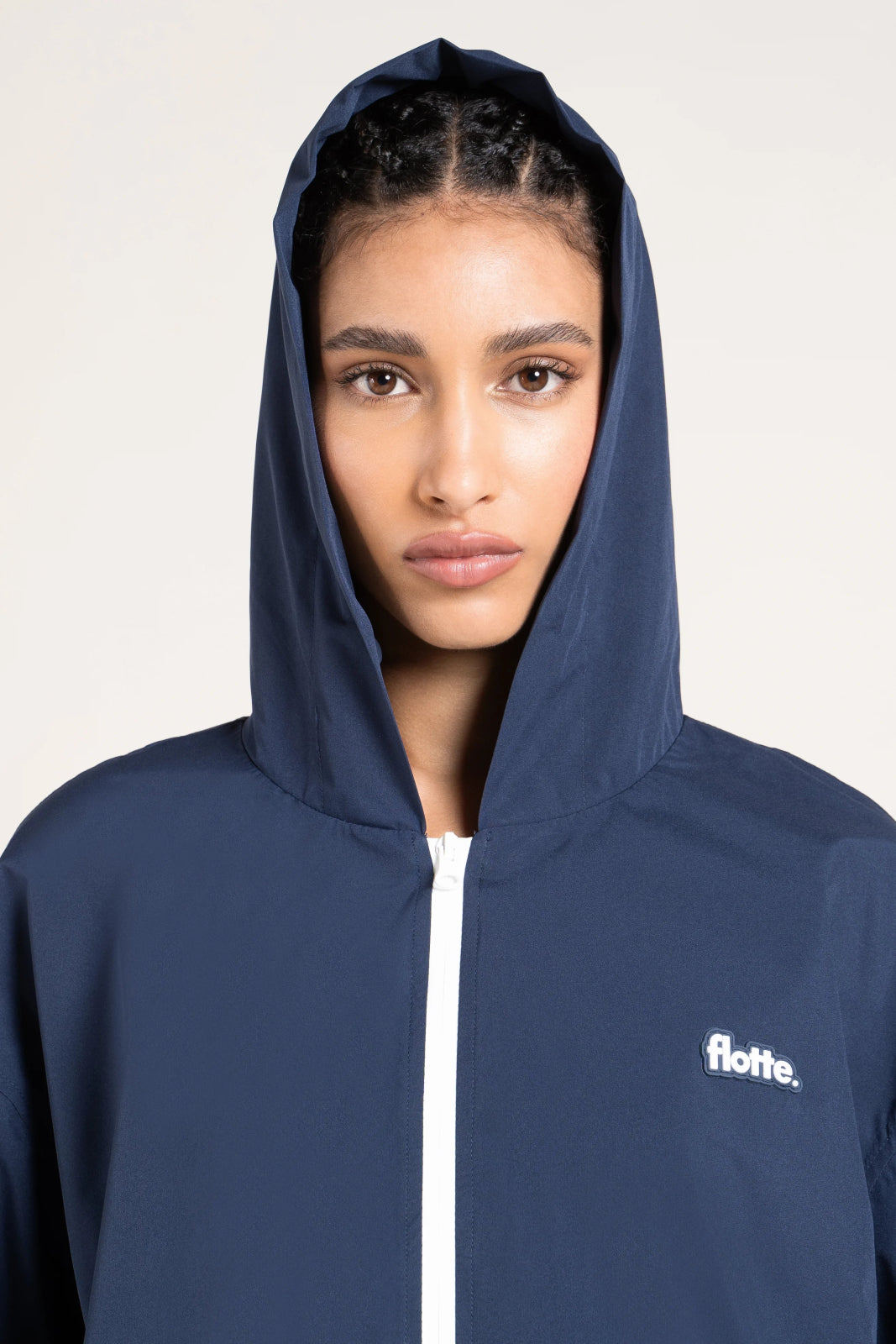 Une capuche imperméable et nomade. Tissu en polyester recyclé.