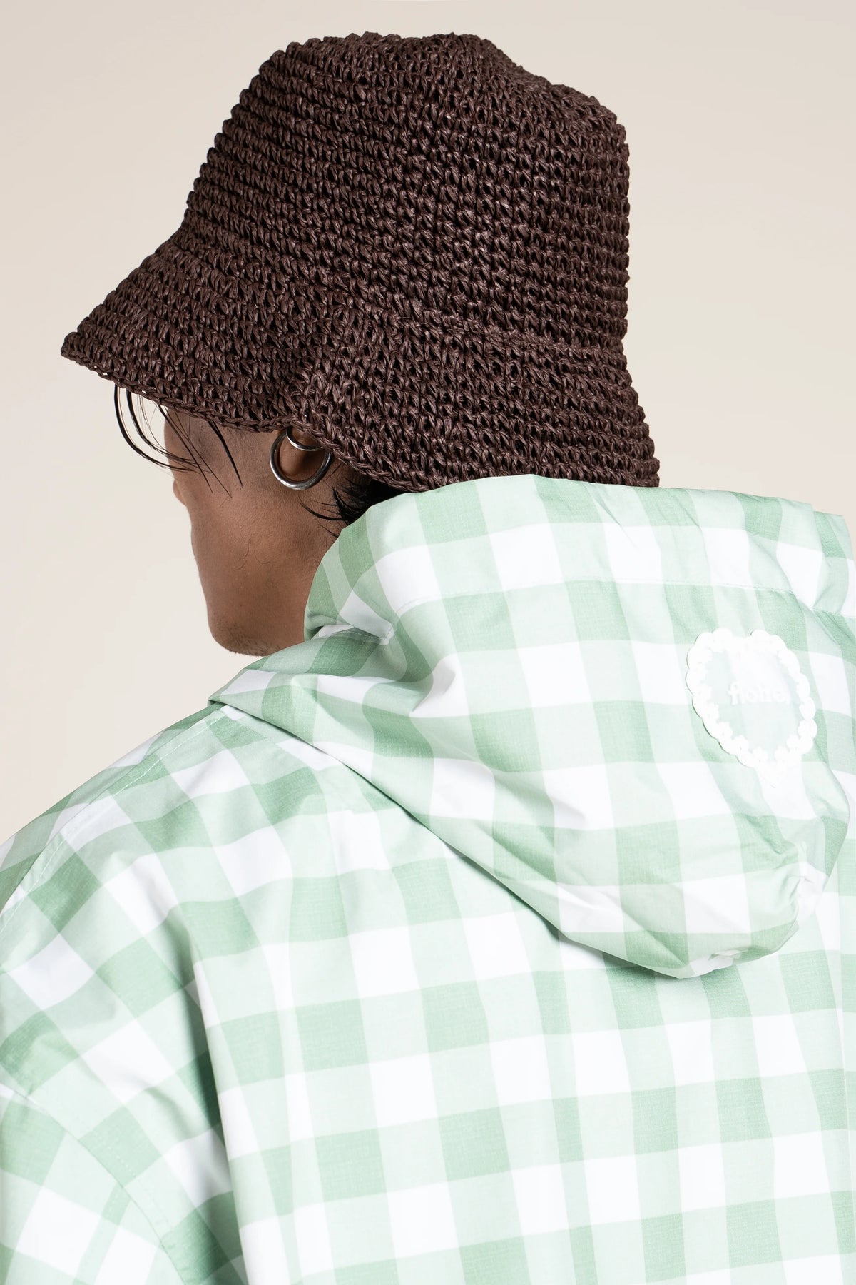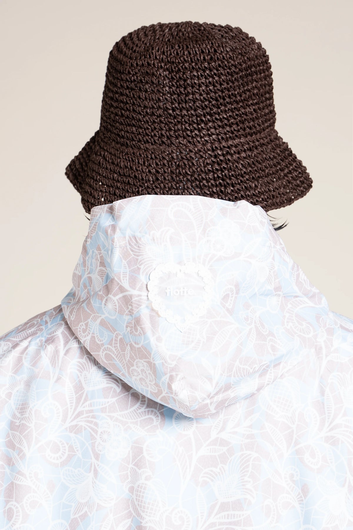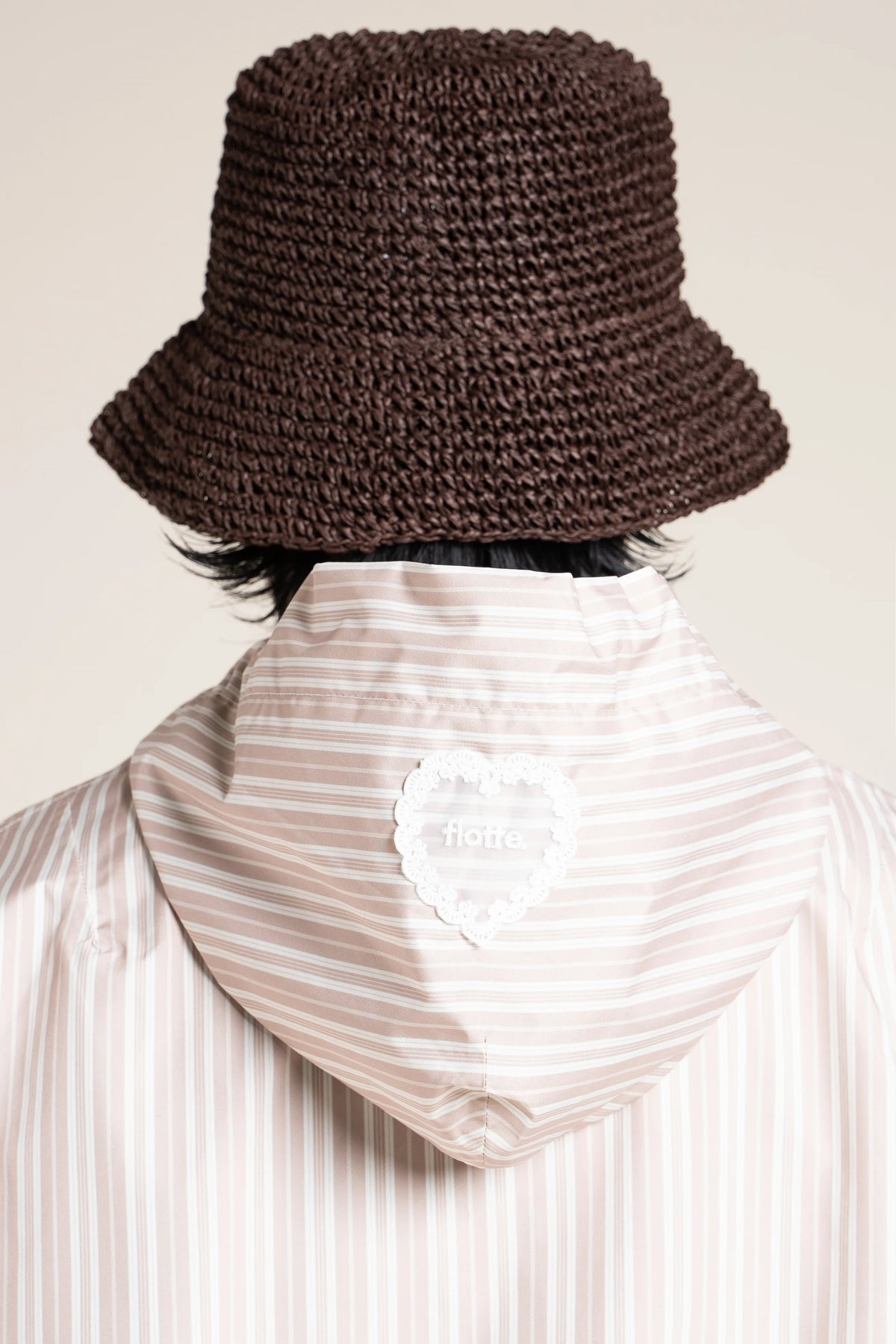 En polyester recyclé. Idéale pour la pluie comme sous le soleil