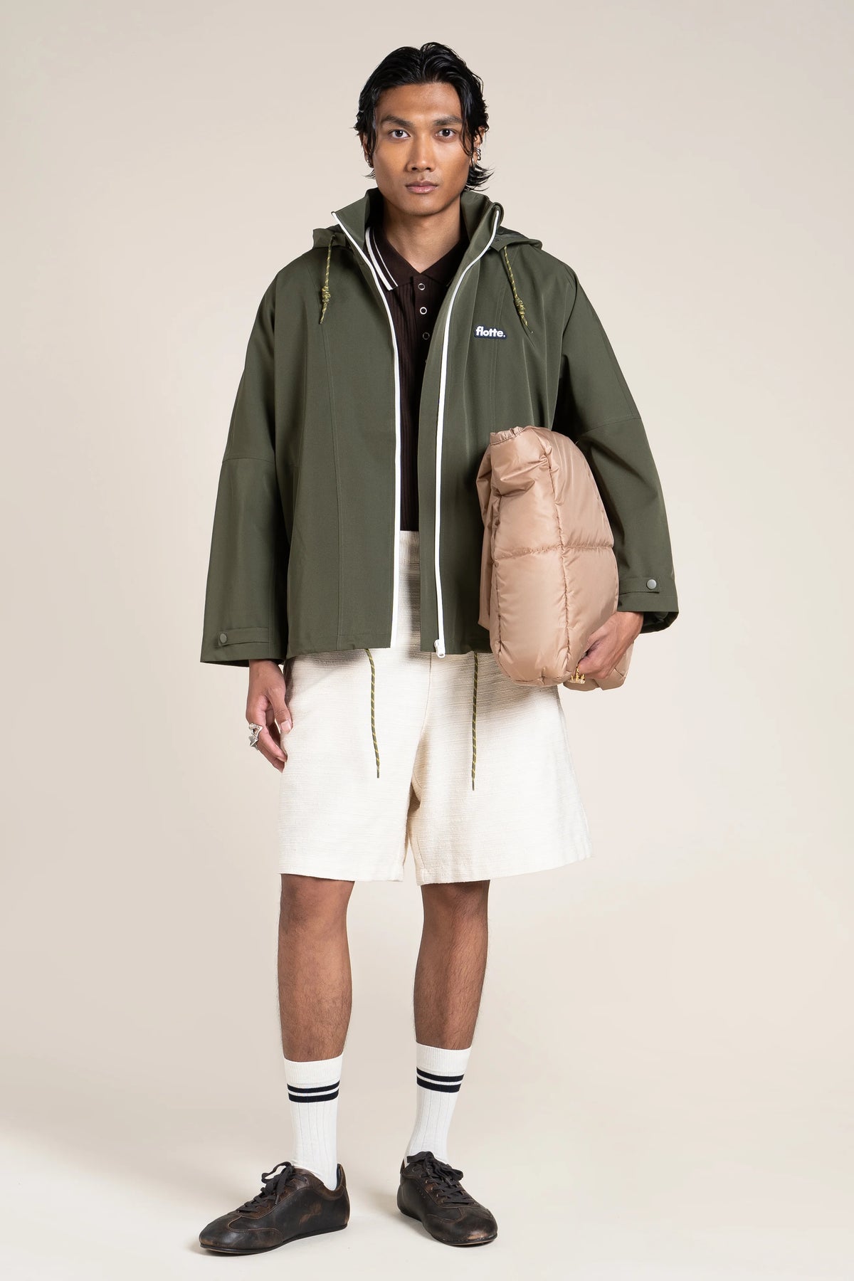 En nylon recyclé. Déperlant, ultra-léger et comfy.